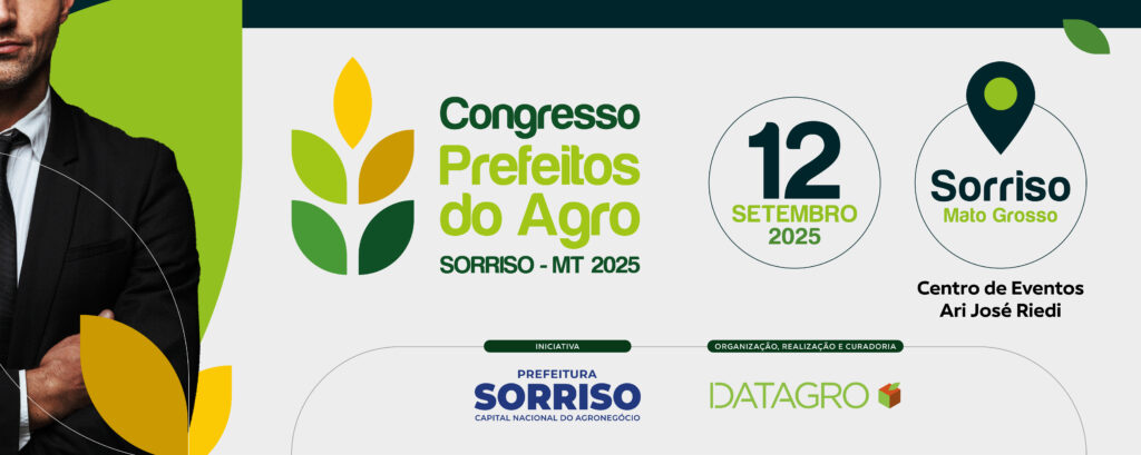 O agronegócio respondeu por 23,2% do Produto Interno Bruto (PIB) do Brasil no ano passado. Para fortalecer as políticas públicas voltadas ao setor, Sorriso, em Mato Grosso, recebe em 12 de setembro de 2025 o 1º Congresso Prefeitos do Agro. A iniciativa é fruto da parceria entre a Prefeitura de Sorriso e a DATAGRO, consultoria agrícola presente em mais de 50 países, responsável pelo conteúdo técnico e pela capacitação dos participantes, e a Prefeitura anfitriã do encontro.