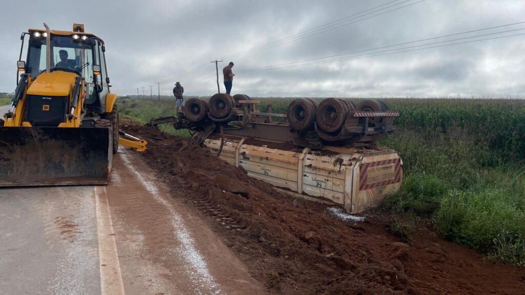 Um incidente envolvendo uma carreta foi registrado na manhã desta segunda-feira (20), no km 759 da BR-163, nas proximidades do aeroporto de Sorriso.