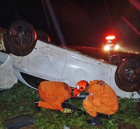 Ao chegarem ao local indicado, os socorristas encontraram um automóvel capotado fora da pista, às margens da rodovia. Apesar da gravidade do acidente, não havia ocupantes no interior do veículo nem pessoas feridas necessitando de atendimento pré-hospitalar no momento da chegada da guarnição.