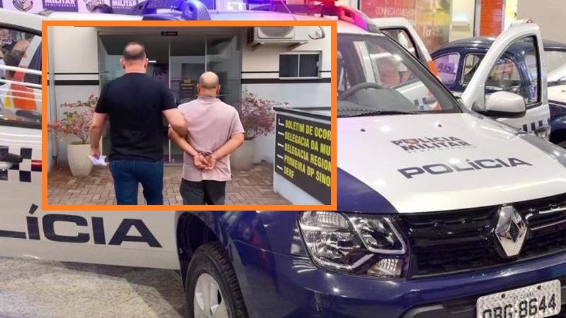 Imagens feitas pelo ‘Sinop Urgente’ mostram o suspeito chegando à Delegacia de Polícia Civil no camburão e algemado.