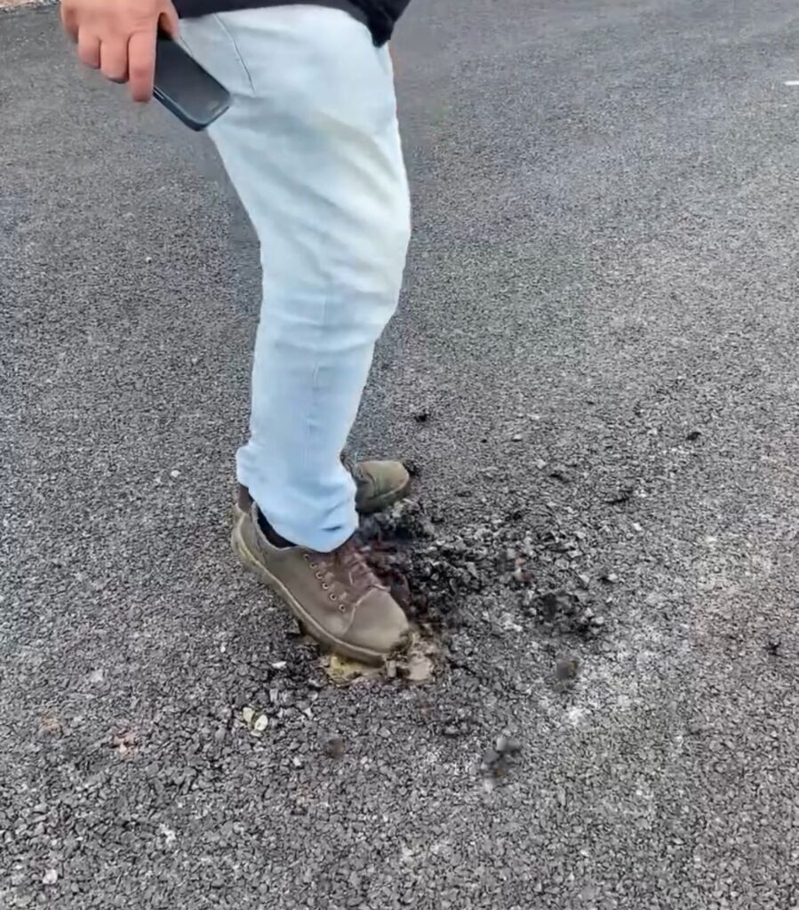 No entanto, o que se observa no local é um asfalto que se desfaz ao simples toque do pé, evidenciando falhas graves na execução da obra. “Isso é inadmissível para uma gestão que dispõe de toda a estrutura e maquinário necessários”, criticou um dos vereadores durante a inspeção.
